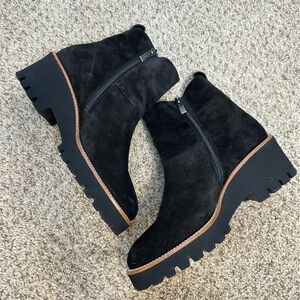 PAUL GREEN Jano Lug Sole Bootie In Black Suede Women Size 5