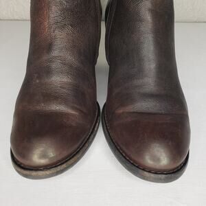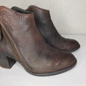 The PAUL GREEN Leather Booties are stylish and versatile women's shoes in a classic brown color. Featuring an almond toe shape, mid heel height with a block heel style, and ankle shaft style, these booties are perfect for various occasions including travel, casual outings, and business meetings. The decorative zipper adds a unique accent to the solid brown leather design. Made in Austria with high-quality leather, these booties offer both comfort and a touch of bohemian flair. Perfect for those looking for a chic and practical footwear option. Good Pre-Owned Condition. Some creasing and scuffs from normal wear. Some back heel drag.