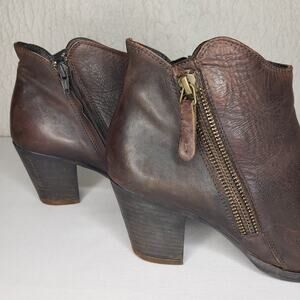 PAUL GREEN Leather Booties Women 5 US 7 Brown Decorative Zipper Heels Austria