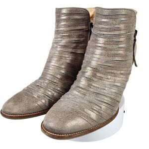 PAUL GREEN- Malibu Sliced Metallic Zip Bootie Chunky Nubuck Smoke, EU 6/ US 8.5