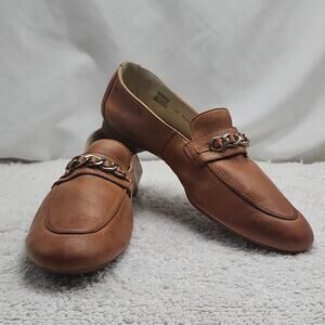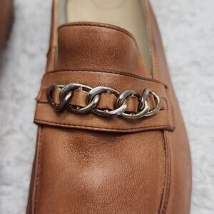 PAUL GREEN NEWCASTLE TAN LEATHER GOLD CHAIN LINK LOAFERS LADIES SIZE 10 NWOB
