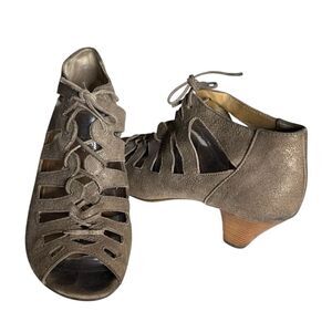 PAUL GREEN Peep Toe Sandal Bootie Metallic Sheen Lace Up Shoes Size 5.5 US 8