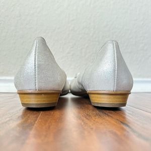 PAUL GREEN Rosette Ballet Flats in Silver Shimmer Suede Leather UK 7 US 9.5