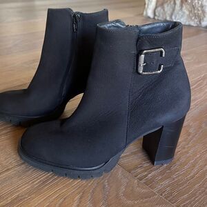 PAUL GREEN Selma Lug Sole Bootie In Black Sport Nubuck