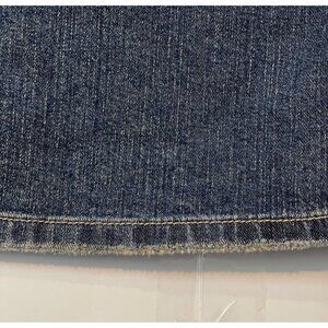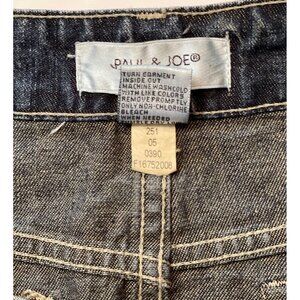 PAUL & JOE for TARGET Collaboration ~ Junior's size 7 dark denim skirt with a vintage y2K-style wash. Embroidered owls on back pockets. Front slant pockets with distressed edges. Button and zip closure.