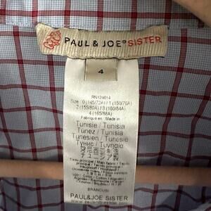 PAUL & JOE Sister Blue Maroon Windowpane Plaid Hi-Low Top Blouse - Sz XL