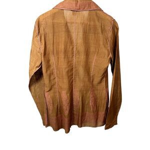 PAUL ROPP Women's One Button Cotton Blouse/Jacket Brown/Pink Size Large