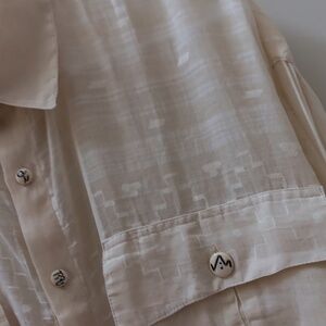DONT FIND TOO MANY OF THESE NWT..MADE IN INDONESIA BY DESIGNER PAUL ROPP...SEMI SHEER PATTERNED CREAM COLOR..DETAILED BUTTONS..100% VERY LIGHTWEIGHT..SEMI SHEER COTTON..WONDERFUL VACA SHIRT!! SIZE 3 ON PAUL ROPP CHART WHICH IS A MED/LARGE..DOES RUN BIG..MEASURES FLAT ACROSS APPROX 29..LENGTH 32..GORGEOUS SHIRT..PICS DONT DO JUSTICE...