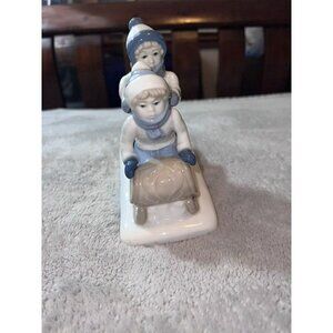 PAUL SEBASTIAN Porcelana De Cuernavaca Mexico Children On Sled Porcelain Holiday