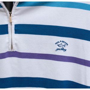 PAUL & SHARK Yachting White Blue Purple Cotton 1/4-Zip Pullover 2XL Italy AS IS