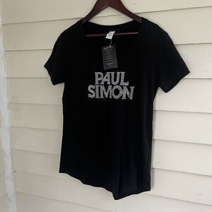 PAUL SIMON Official Bling Apparel Crewneck Cotton T Shirt, Black/silver- Size S
