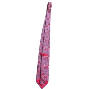 PAUL SMITH Metallic Baroque Silk Geometric Pattern Tie Made in Italy. Purple and pink geometric spotted allover pattern. Classic neck tie featuring a pointed tip, an adjustable fit with contrast rose print lining.