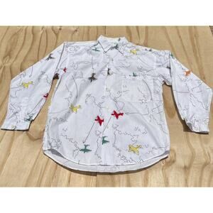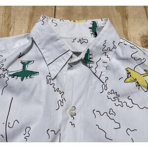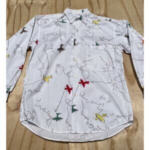 PAUL SMITH Plane Design Button Down Front Long Sleeve Shirt Men's White SIZE OS