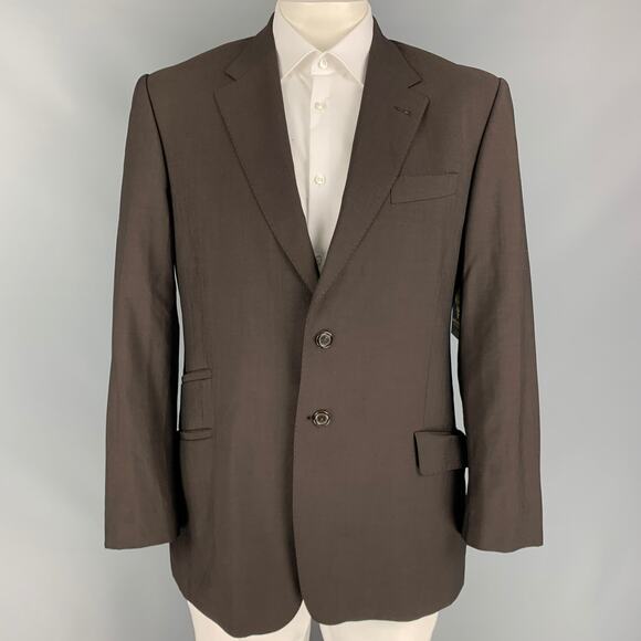 PAUL SMITH sport coat comes in a brown wool / mohair wih a full liner featuring a notch lapel, front pockets, and a double button closure. Made in Italy. Very Good Pre-Owned Condition.