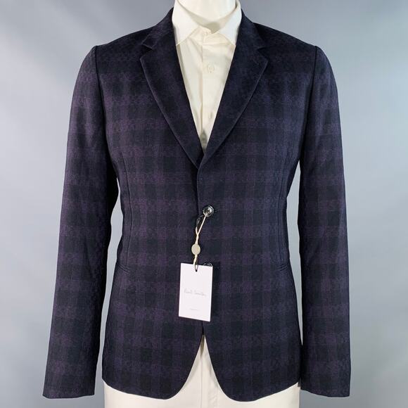PAUL SMITH Size 44 Soho Purple Black Plaid Wool Notch Lapel Sport Coat