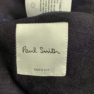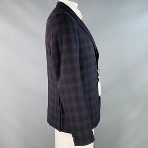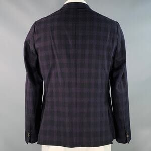 PAUL SMITH "Soho" sport coat in a purple and black wool featuring a plaid pattern, notch lapel, double vented back, and double button closure. Made in Italy.