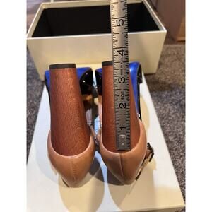 PAUL SMITH Womens Shoes Leather Tan & Black Patent Kilte Flap us 39.5 Heels 8.5