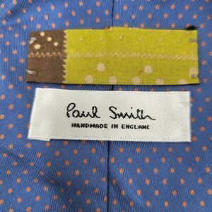 PAUL SMITH mens blue yellow polka dot silk tie made in England