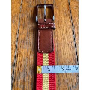 PAUL STUART Red/Yellow Stripe Stretch Belt w/Leather Trim Mens sz 42