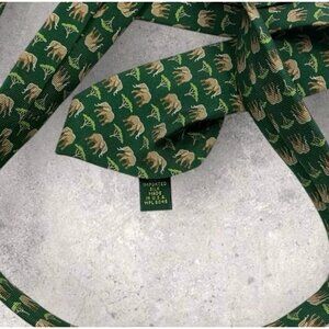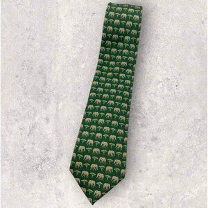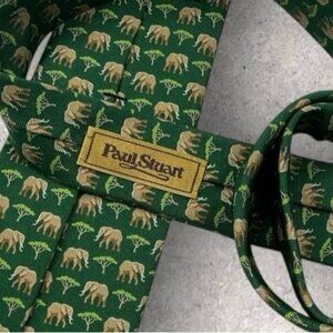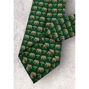 PAUL STUART Silk Tie USA Green Beige Elephant Tree W:3.4" EUC