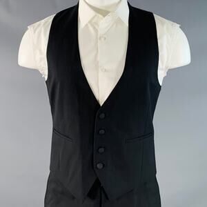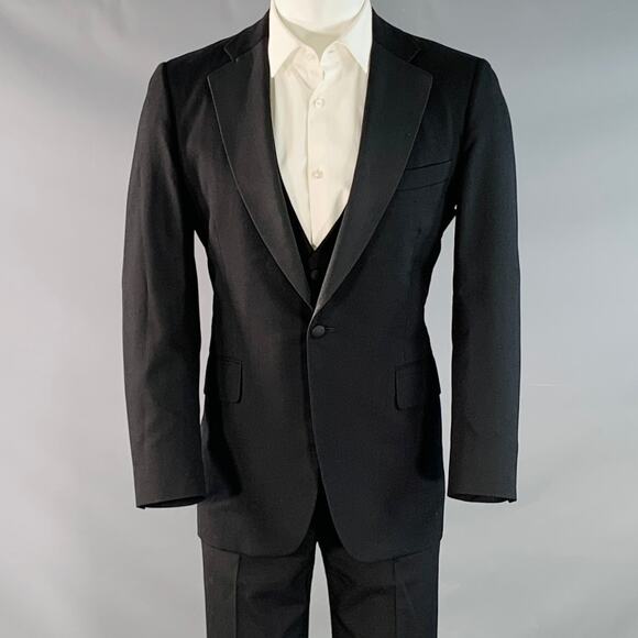 PAUL STUART Size 38 Regular Black Wool Notch Lapel 3 Piece Tuxedo