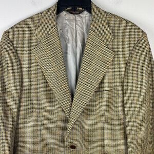 PAUL STUART Wool Mens 41 Tall Blazer Coat Jacket Gold Brown Plaid Houndstooth PreOwned Great Condition Length collar to bottom front 33 Sleeve length shoulder hem to wrist 24.5 For pit to pit and back , see pictures