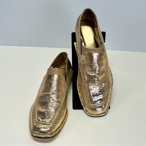 MADRID Gold reptile embossed square toe loafers from PAULA TORRES, size 9.