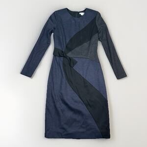 PAULE KA Milano Sheath Dress Wool Blue Gray Size FR 38 US 6 M Long Sleeve