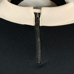 Color: black with white collar and sleeve cuffs