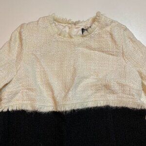 PAULE KA Wool Tweed Fringe Vintage Dress Creme High Waist Winter Classic Luxury