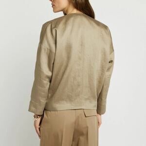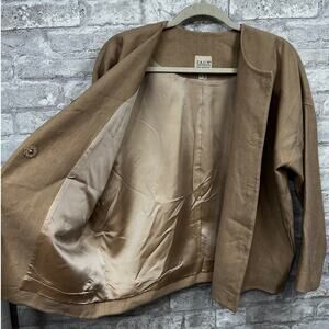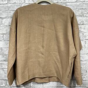 PAUW Linen Blend Tan Short Hidden Button Lightweight Blazer Pocket No Collar 0