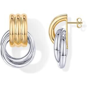PAVOI 14K Gold Plated Chunky Door Knocker Earrings Women Dangle Drop Statement