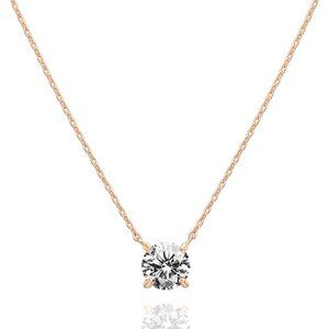 HIGHLIGHTS: A 7.3mm cubic zirconia crystal is prong-set in a 14K rose gold-plated setting to complete this small pendant. It is 18" in length with a 2" extender. This jewelry for women will comfortably fit all neck sizes.