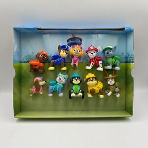 Complete set of ten Paw Patrol collectible figurines, showcasing all your favorite pups in vibrant detail. Each figure is designed with attention to character accuracy, capturing the charm and personality of the Paw Patrol team. These figures are ideal as cake toppers for a Paw Patrol-themed birthday party, for imaginative play sessions, or as a delightful addition to any Paw Patrol collection.