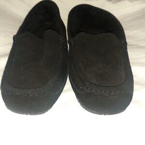 PAWZ BEARPAW BLACK LEATHER SLIPPERS SLIP ON SHEEPSKIN LINED-MENS SIZE 9