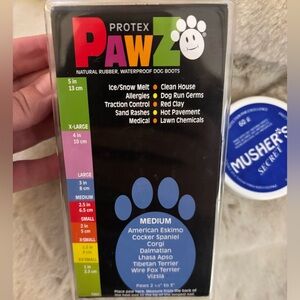 Used the Musher’s once and then bought the PAWZ dog boots. There are 8 rubber dog boots left in the package.