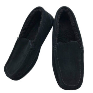 PAWZ by Bearpaw Men's Black Leather Slip On House Slippers US 10 Faux Fur Inside