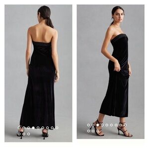 Gorgeous Payal Jain x Anthropologie velvet maxi gown featuring an elegant strapless neckline and beaded detail across the bodice. Luxe black velvet, perfect for black tie events, evening weddings, winter formal, holiday galas & New Year’s parties. Timeless, sophisticated, and NWT!