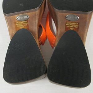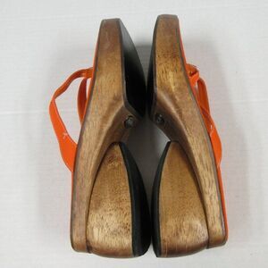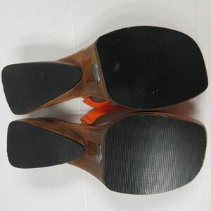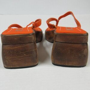 PAZZO Chunky Wood Platform Y2K Slide Sandals Sz 7 Orange Fabric Shoes VINTAGE 90