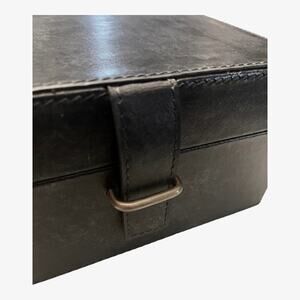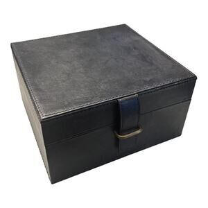 Pottery Barn Black Saddle LEATHER JEWELRY BOX Men’s Ladies 8” Square NEW w\o Tag
