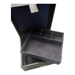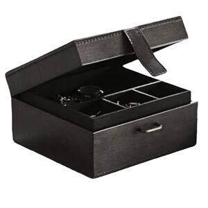 PB Black LEATHER JEWELRY BOX + TRAY Mens Ladies 8” Square Dresser Organizer
