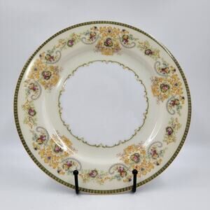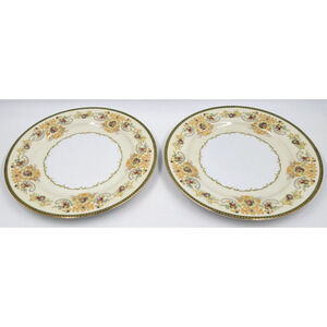 P.B. Japan Charm 9 7/8" Dinner Plate Floral Scroll Gold Green Trim 1950s Set of 2