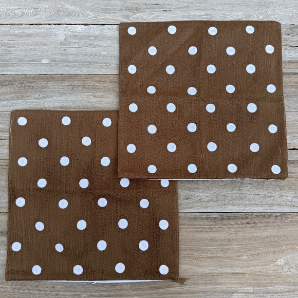 PB Teen Brown Polka Dot Crewel Pillow Covers 16 x 16
