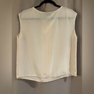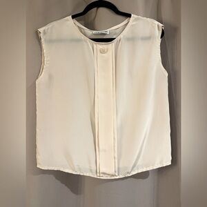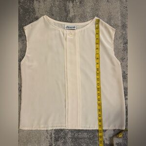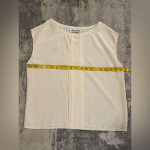 This cream blouse features a boxy silhouette with a buttoned front, offering a sophisticated and tailored look. The textured fabric adds a touch of elegance, making it versatile for both casual and formal occasions.