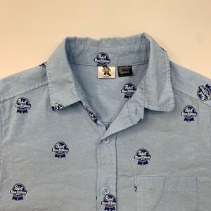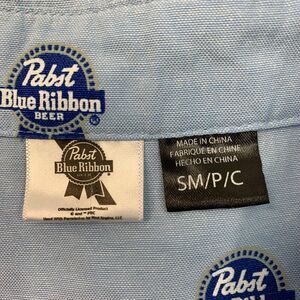 PBR Pabst Blue Ribbon Beer Shirt Mens S Small Woven Button Up Short Sleeve