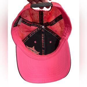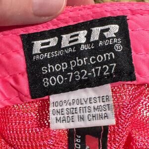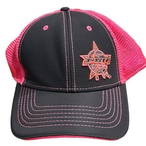 This is a super cool hat for PBR. The Pofessional Bull Riders in gray and hot pink. Hat has a snapback close easily adjustable and is in great gently used condition. Does have a few little teeny tiny spots on the inside of the brim but they’re barely visible. There is a photograph showing.