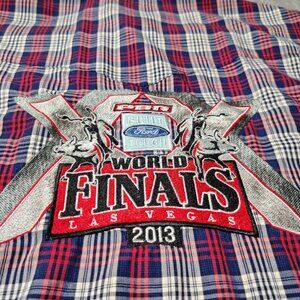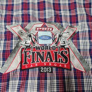 FOR SALE is a 2013 PBR World Finals long sleeve Wrangler pearl snap western shirt in very good condition