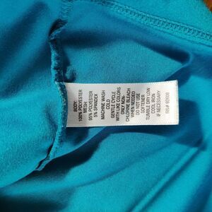 This is a turquoise PBX Pro Speed Dri racer back athletic tank top. This top measures 25.5 inches from shoulder to hem, 17.75 inches from armpit to armpit, and the straps measure 2.25 inches in width. This top is preloved with no flaws.