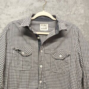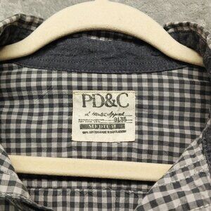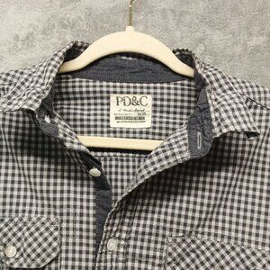 PD & C Shirt Men's Size MEDIUM Button Up Shirt Check 100% Cotton Flap Pockets
