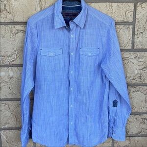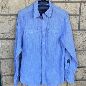 PD & C button up blue and white tiny striped Shirt Med career work Job